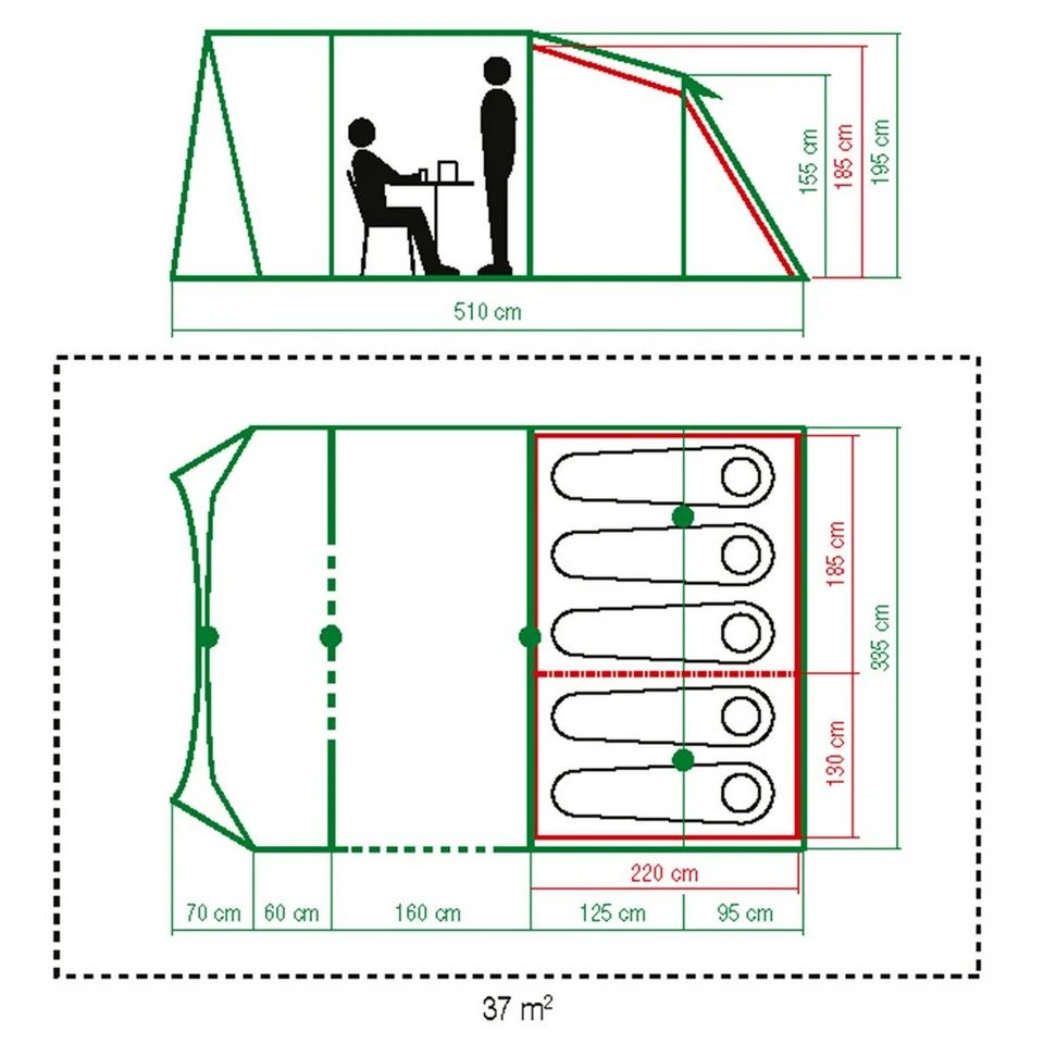 A spacious and comfortable five-birth fibreglass pole tent thatâs easy to pitch.