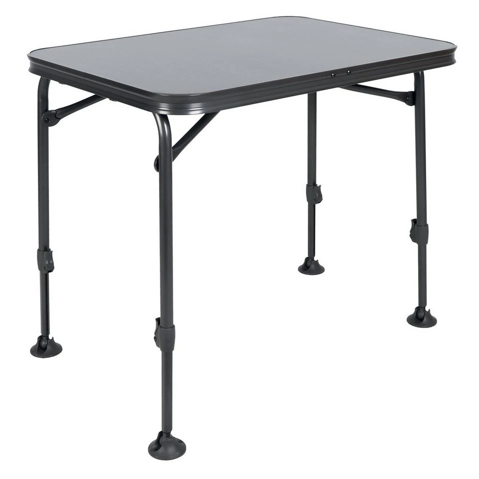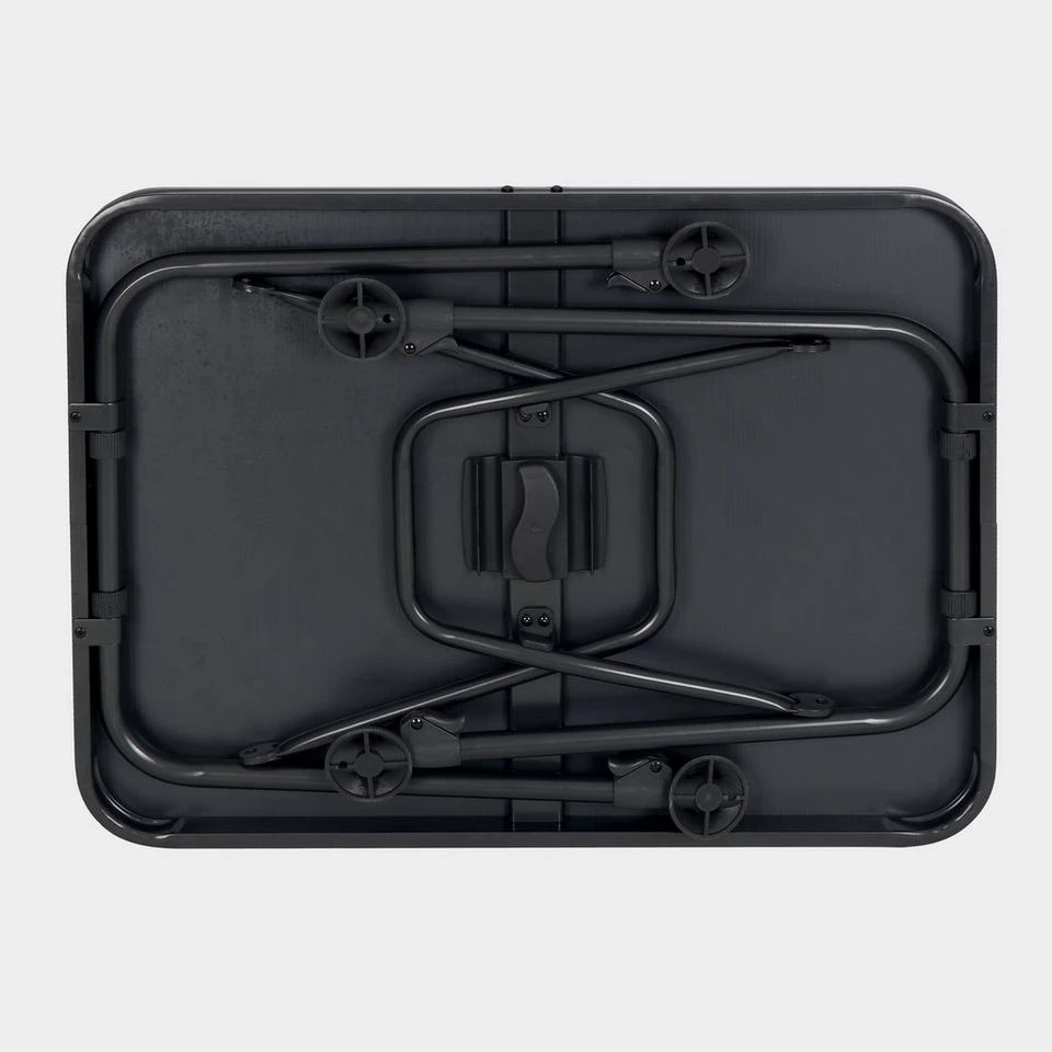 An easy to set up camping table made from durable materials that can withstand weather and wear. Each leg is adjustable so you can find a secure set-up on uneven terrain and features wide feet to prevent sinking into soft ground.