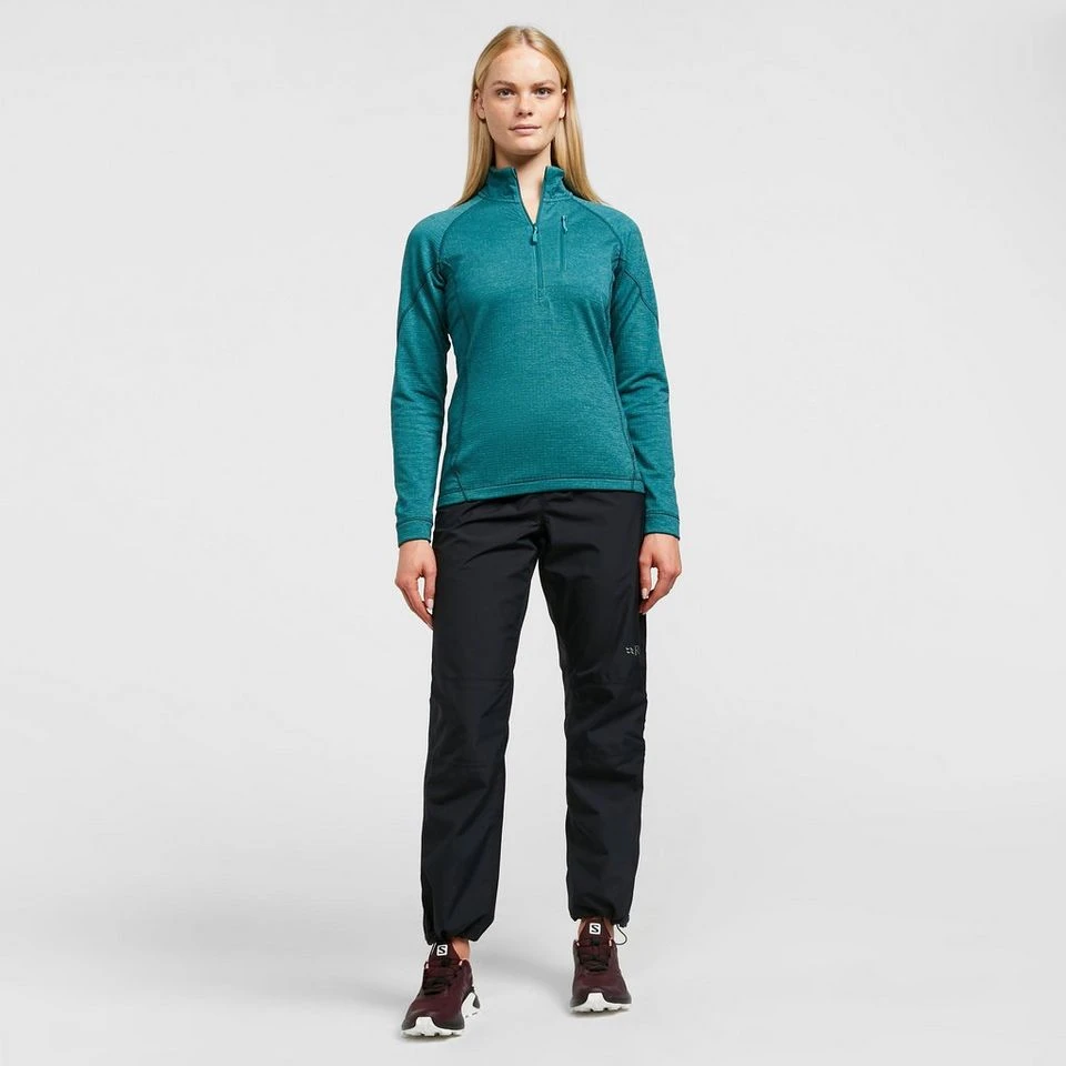 Constructed from a 2.5-layer PertexÂź Revolve fabric with a fluorocarbon-free DWR treatment, the Womenâs Downpour Eco Pants will keep you dry whilst walking and exploring. Thanks to the knee-length side zips and elasticated waistband, they can easily be pulled over trousers and walking boots in unexpected showers and are easily packed down to fit in your rucksack when on the move.